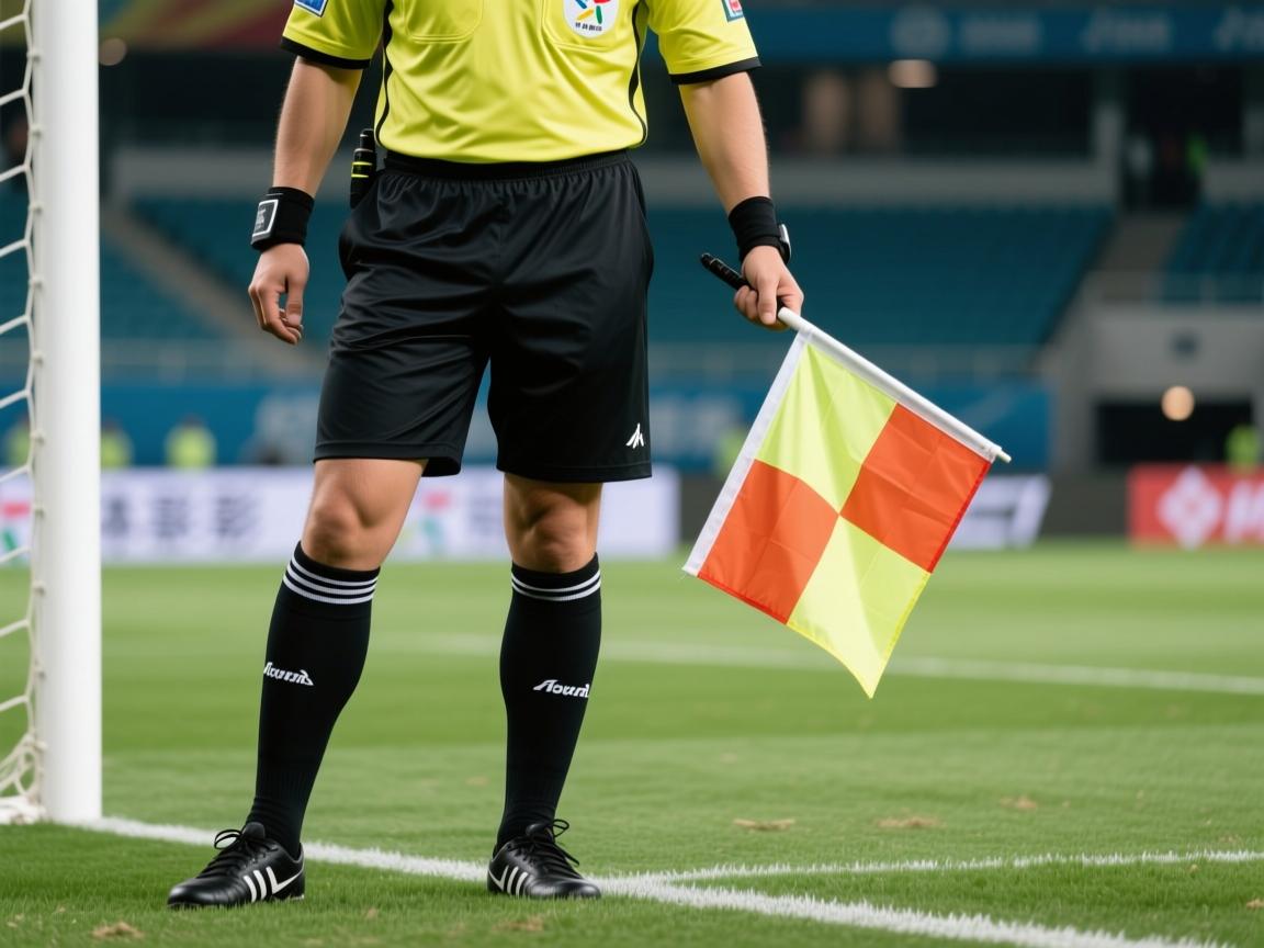在喧闹的球场上,边裁主要通过旗语与主裁判进行沟通。这套标准化的“语言”是裁判之间高效协作的基础。