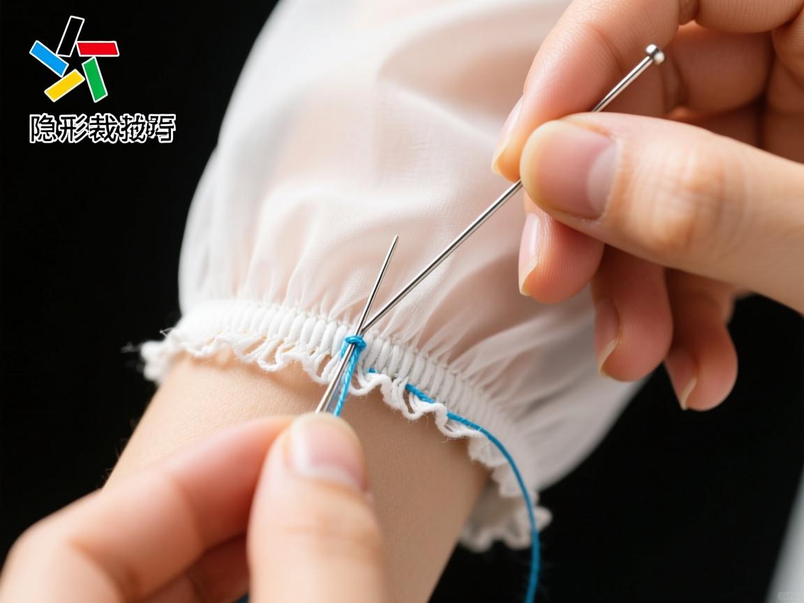 先将袖边按所需长度折好,从内侧入针,针尖只挑住外层布料的1-2根纤维,然后将针横向穿到对面折边里,再挑住对面的布料纤维。如此左右交替进行,线迹完全隐藏在折边内。