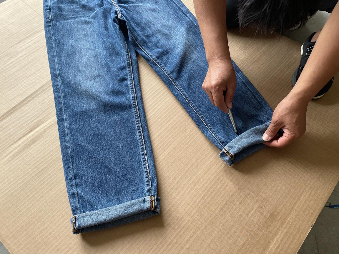 牛仔裤的裁边相对特殊,因为牛仔布通常较厚实。折边宽度建议留3-4厘米,太窄容易脱线,太宽则显得笨重。可以先往里折1厘米熨出第一道痕,再按需要的长度折第二次,用珠针固定最为稳妥。近年来,直接给牛仔裤脚“剪一刀”制作毛边效果也很流行,剪时注意不规则剪裁+自然毛边会更时尚。