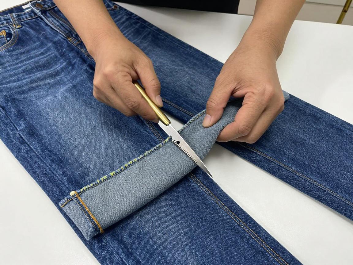 对于加厚牛仔裤等特殊面料,裁边时需要更多技巧。这类面料又厚又硬,普通家用锁边机可能难以处理,甚至可能导致设备“罢工”。因此最好选择专业设备的工作室进行处理。
