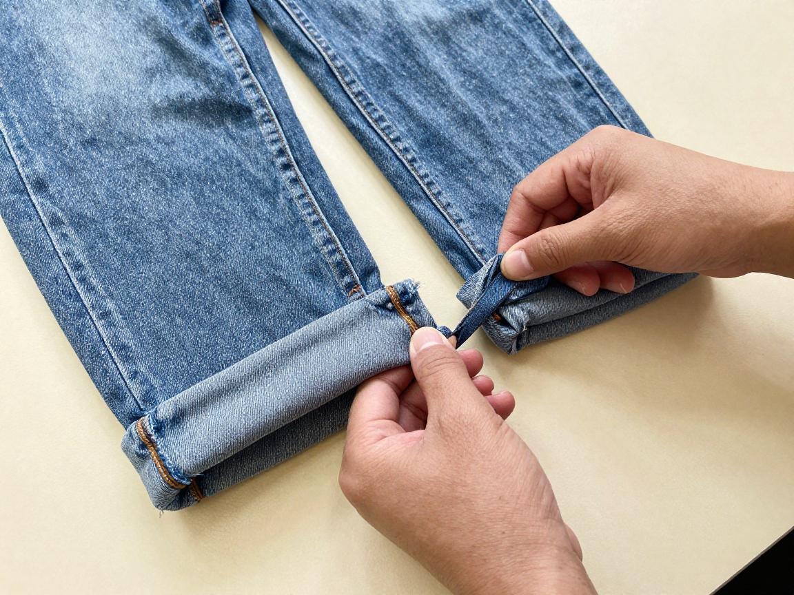 新手DIY最常见的问题是两条裤腿长度不一致。解决方法很简单:先剪一条裤腿,另一条裤腿用剪下的布条当尺子,这样能确保两边一致。