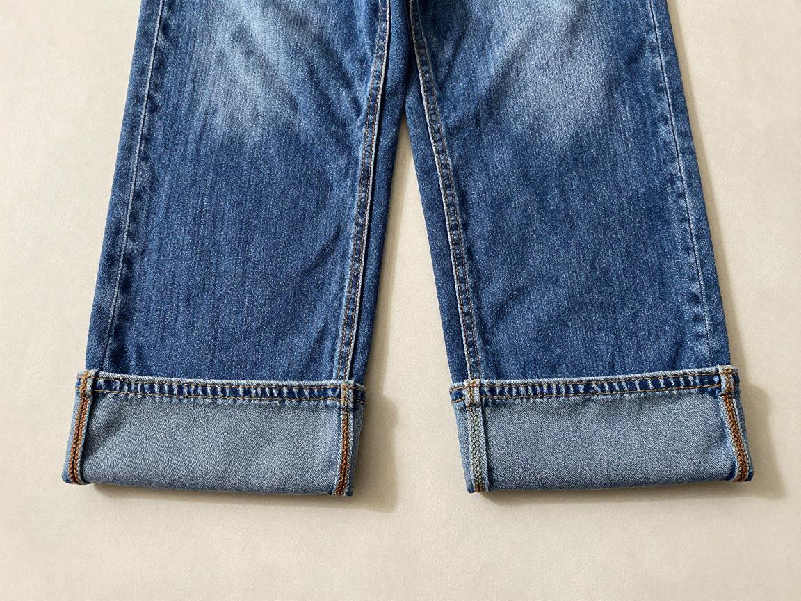 普通边修改是指裁缝按照新裤长直接裁剪后制作新的脚口边。这种方法适用于纯色或没有特殊水洗效果的牛仔裤,因为这类裤子脚口没有需要保留的自然磨白印痕。